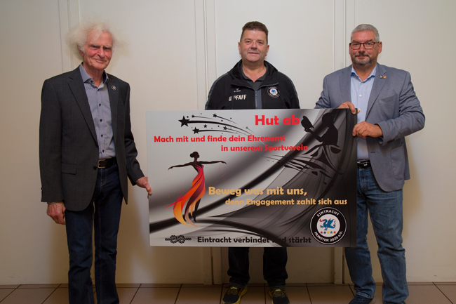 Der Verein möchte auf das Ehrenamt aufmerksam machen und es stärken. Unter dem Titel „Hut ab“ stellt die Eintracht Munster eine Kampagne vor, mit dem der Verein mehr auf das Ehrenamt aufmerksam und es auch stärken möchte. Zudem erhoffen sich die Verantwortlichen, dass sich sowohl jüngere als auch ältere Menschen für unbesetzte Ämter im Verein interessieren und diese Lücken füllen. Insgesamt sind rund 287 Ehrenamtliche unterschiedlichen Alters in der Eintracht tätig und sorgen so für einen reibungslosen Ablauf des Vereinsgeschehens. Unzählige Stunden werden von diesen Vereinsmitgliedern im Jahr zum Allgemeinwohl geleistet. Jährlich findet am 5. Dezember ein Internationaler Tag des Ehrenamtes statt und ist ein abgehaltener Gedenk- und Aktionstag zur Anerkennung und Förderung ehrenamtlichen Engagements. Er wurde 1985 von der UN mit Wirkung ab 1986 beschlossen. Kürzlich wurde nun eine Werbetafel der Kampagne Hut ab von den stellvertretenden Vorsitzenden Heinz Wagner und Andreas Ebeling sowie dem Geschäftsführer Ulrich Pfaff vorgestellt. Diese soll einen Platz am Vereinsheim in Breloh finden und so für das Ehrenamt werben. Die Idee für die Kampagne und Vorlage für die Werbetafel stammten aus der kreativen Feder des Spartenleiters der Fotorunde Jens Hoffmann und wurde von der Digitaldruckerei Werbeservice Hannemann hergestellt.