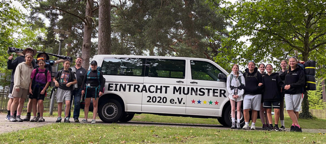 Stadt Munster kann keine Übernachtungsmöglichkeit zur Verfügung stellen. Als kürzlich der Geschäftsführer der Eintracht Munster, Ulrich Pfaff, in einem der hiesigen Discounter einkaufen wollte, stieß er auf einige Jugendliche, die abgekämpft vor dem Gebäude saßen. Die Neugierde überwiegte und so erkundigte sich der Geschäftsführer, woher die Gruppe denn käme. So wurde ihm berichtet, dass die 20 Jugendlichen im Alter von 10 bis 16 Jahren und ihre vier Betreuer, 19 bis 22 Jahre alt, der Kolping-Stiftung angehören, aus Gelsenkirchen-Horst stammen und sich auf einer Pilgertour in der Lüneburger Heide befänden. Des Weiteren berichteten sie, dass man an diesem Tag am Bahnhof Brockhöfe gestartet wäre und sich komplett verlaufen hätte. Sie wären nun in Munster gestrandet und auf der Suche nach einer Unterkunft für die Nacht. Offizielle Vertreter der Stadt Munster könnten keine Sport- oder Turnhalle in den Sommerferien für eine Übernachtung zur Verfügung stellen, so die Jugendlichen weiter. Pfaff reagierte umgehend und lud die Gruppe in das nahe gelegene Vereinsheim Osterberg ein. Dort angekommen waren die jungen Pilger sofort begeistert, da ihnen im Gebäude ein großer Raum zum Schlafen, Toiletten und eine Küche zur Verfügung standen. Des Weiteren wurde den Jugendlichen die Nutzung eines Kickers und der Minigolfanlage ermöglicht. Der Geschäftsführer spendierte noch einen Kasten kühle Getränke und händigte eine Speisekarte von einem ortsansässigen Pizzalieferservice aus. Am nächsten Morgen schaut er nach dem Rechten und wurde glücklich und gut gelaunt im Vereinsheim empfangen. Die Pilgergruppe wollte gerne ihren Weg Richtung Wietzendorf fortsetzen und suchte natürlich auch dort wieder nach einer Übernachtungsmöglichkeit. Der engagierte Sportsmann der Eintracht setzte sich umgehend mit dem Geschäftsführer des TSV Wietzendorf in Verbindung und erhielt sofort die Zusage, dass die Pilgergruppe in der dortigen Sporthalle ein Quartier für Nacht bekommen könnte. Nach einem gemeinsamen Abschlussfoto machten sich die Jugendlichen auf, um die Strecke Richtung Wietzendorf in Angriff zu nehmen.